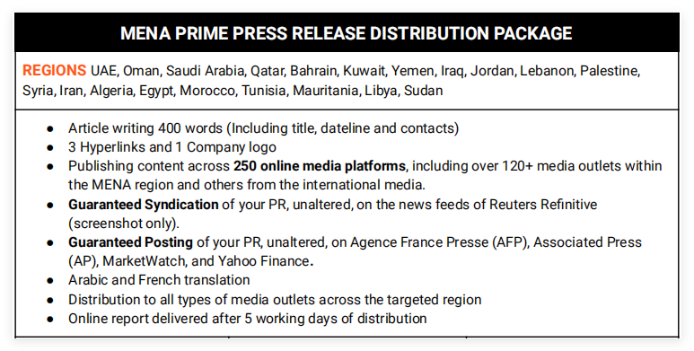 海外媒体发稿,中东北非MENA发布套餐,媒体传播辐射20国