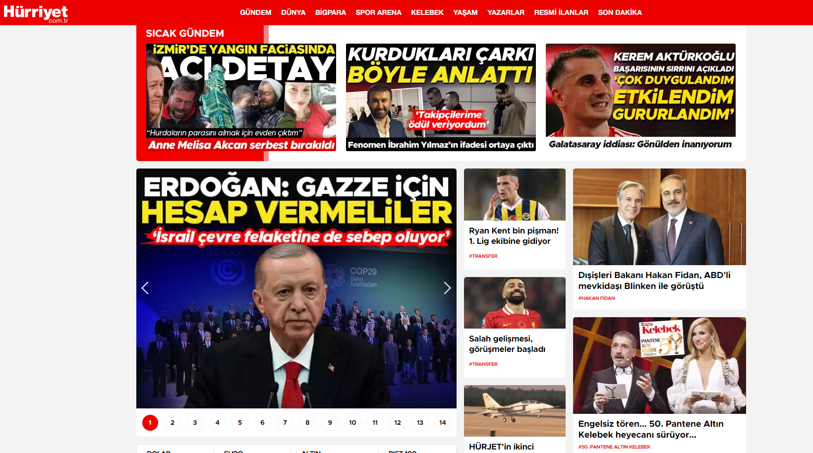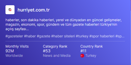 自由报Hurriyet提供的服务内容非常丰富,涵盖国际时事,体育,生活,经济,重大新闻,日常等,月访问量达到9200万,网站排名前十,土耳其人口也才9000万左右,这个流量可以说是非常巨大的。