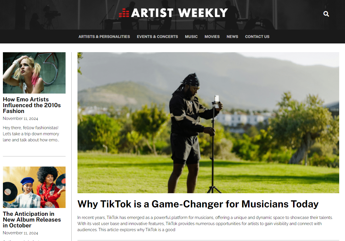 《艺术家周刊》致力于发布有趣的、准确报道的、与音乐产业相关或有关的媒体。包括艺术家和名人,活动与音乐会,音乐,电影等。